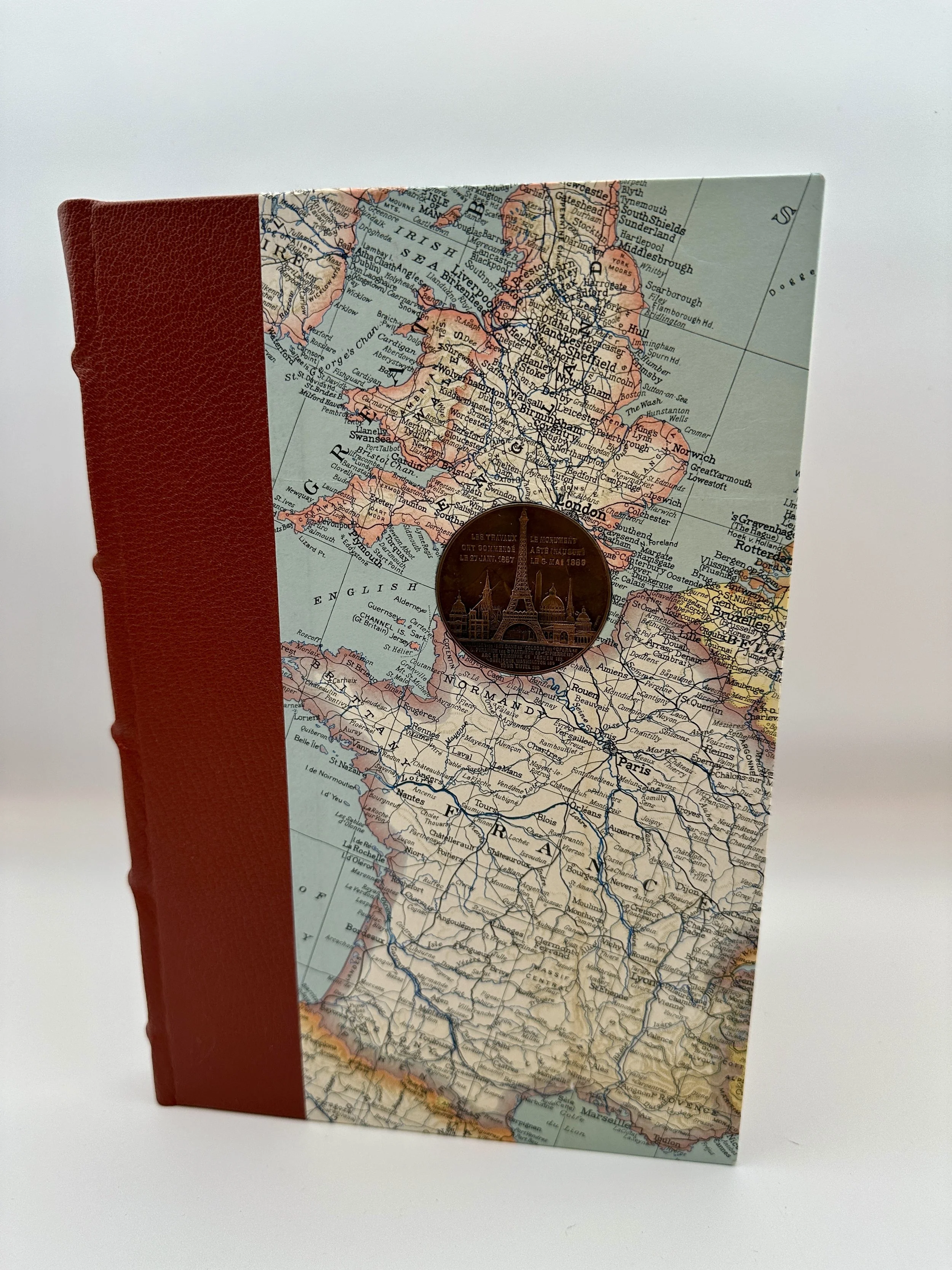 The talisman in this book is a medal for climbing the Eiffel Tower in the year it opened: 1889. On its face, it says that work on the monument began on 27 January 1887 and ended on 6 May 1889. It’s obverse is dated 1889 and states that it is the “souvenier do mon ascension au 1er etage de la tour eiffel.” Climb higher.